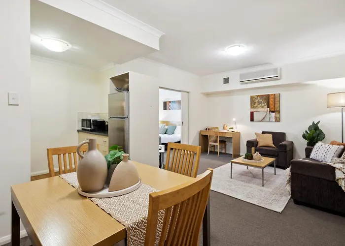 Prized Perth Retreat 1Bdr公寓坐落在北桥区.走路只需13分钟即可到达The Best Brew Bar & Kitchen酒吧. 公寓设有室外游泳池和大厨房,距离国王公园战争纪念碑有2.6公里.